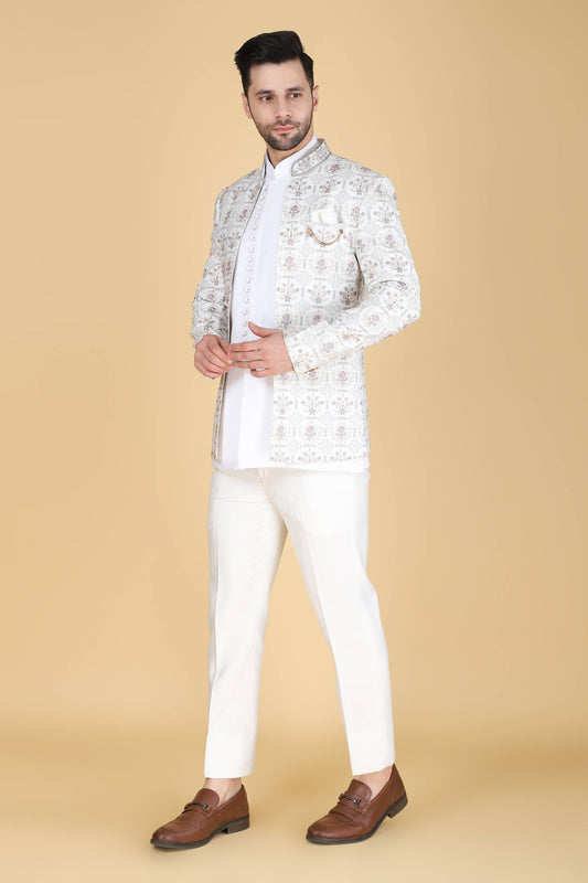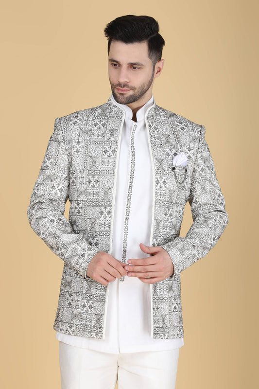White Multicolor Thread And Sequins Embroidered Short Indowestern