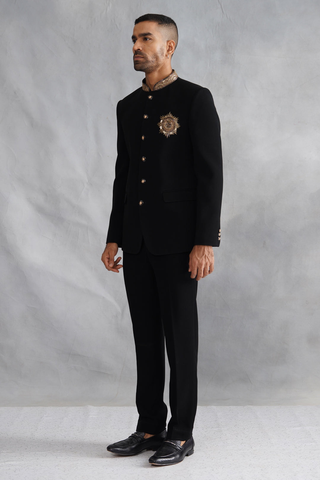 Black Hand Embroidered Bandhgala on Italian Fabric