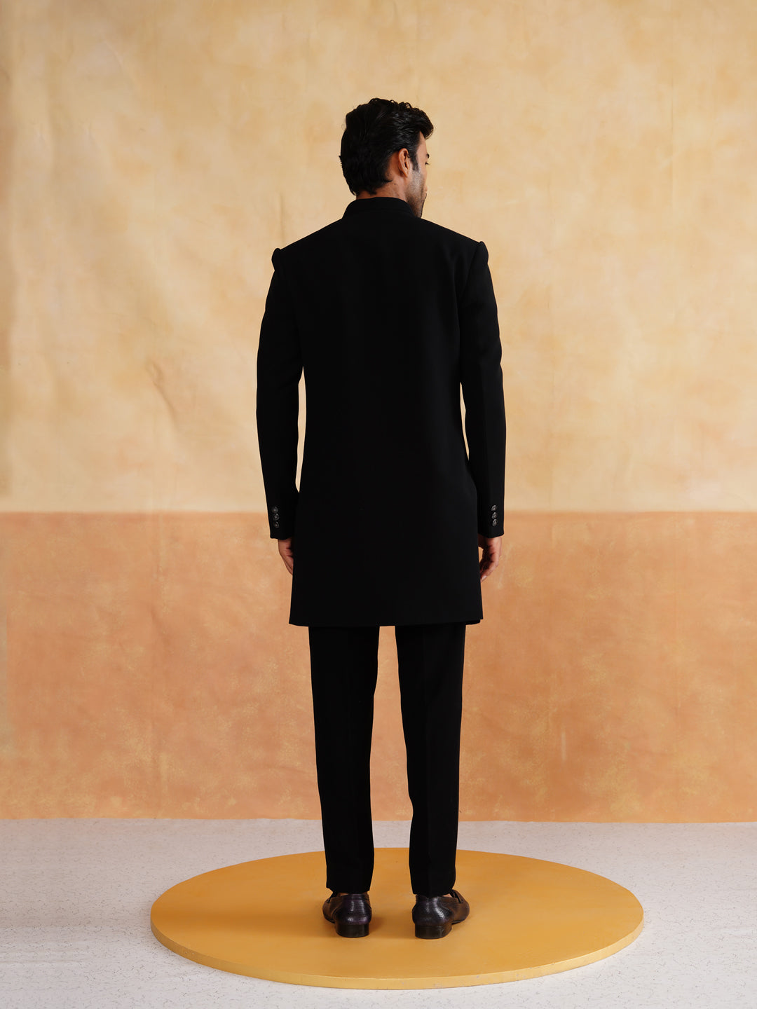 Black Indowestern with Thread Work Stole on Italian Fabric