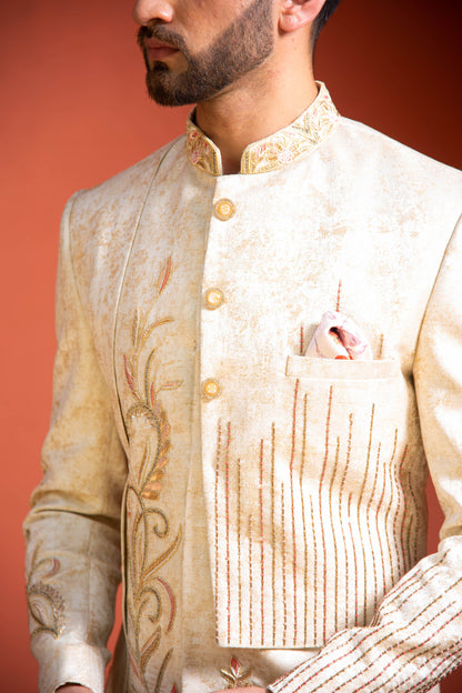 Golden Beige Zardosi And Cutdana Embroidered Italian Indowestern