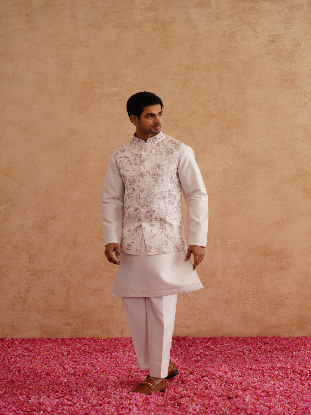 Light Pink Thread And Sequins Embroidered Waistcoat Kurta Set